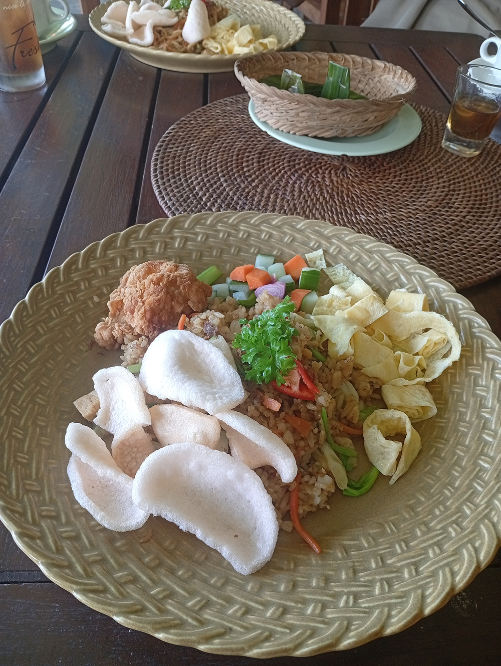 テラスパディカフェでは、ナシゴレン、ミーゴレン、チキンカレーなど手軽なインドネシア料理が楽しめるほか、サンドウィッチやパスタもあり、こちらもかなりいけてます。(カルボナーラ Rp22500が美味!) 料理の盛り付けも素敵ですが、使用しているお皿が上品(ジェンガラケラミックで統一しているよう)なこともあって、さらに美味しさが引き立てられているように思います。